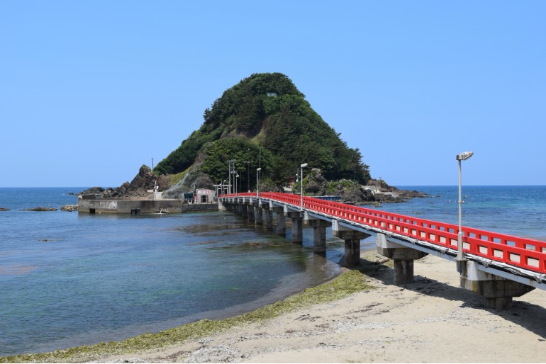 山形県鶴岡市は、日本海に面した自然と歴史が息づくまちです。なかでも由良地区にある白山島は、歩いて渡れる島として知られ、岩礁と澄んだ海が織りなす美しい景観が魅力です。周辺には温泉や新鮮な海の幸も豊富で、観光にもぴったりのエリアです。
