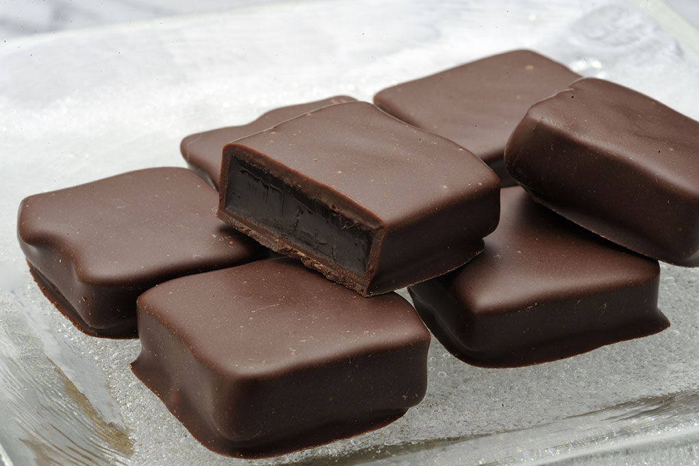 日本の林檎の原種ともいわれる「紅玉」は、鮮やかな赤色と、酸味と甘みの絶妙なバランスが特徴の品種です。小粒で水分が少ないため、果汁にすると濃厚でフルーティーな甘酸っぱさを堪能できるのが特徴。そんな紅玉を丁寧に仕立てたジュレを、カカオ58%のクーベルチュールチョコレートでコーティング。ひと口かじると、果実の酸味が弾け、チョコのほろ苦さがゆるやかに溶け合い、絶妙なハーモニーを生み出しています。外側はパリッと、内側はとろりとした二層の食感が生み出す心地よい余韻も魅力。原料から、包装までこだわりが詰まった逸品は、贈りものにもぴったり。冷やして食べれば果実味がいっそう際立ち、上品な甘酸っぱさが口いっぱいに広がります。素材の個性を最大限に活かした、フルーツ王国ふくしまならではの味わいといえるでしょう。