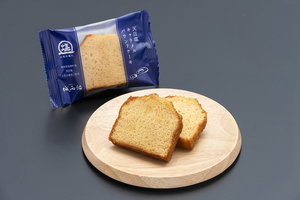 ふんわり焼き上げた生地に、ほろ苦く香ばしいキャラメルの風味が重なる「天日塩キャラメルパウンドケーキ」。ひと口ほおばれば、やさしい甘さが口いっぱいに広がります。そこにアクセントを加えるのは、高知・黒潮町の海と太陽が育んだ大変希少な「土佐の塩丸」。生産者である塩守りたちが、火を使わず、満潮時の海水を天日と風の自然の力だけで夏季は1か月、冬場は2か月以上じっくりと結晶化させます。土佐の恵みをたっぷり受け、ミネラルが豊かに残った塩丸は、複雑で深い旨味が特徴です。キャラメルパウンドケーキの甘さを引き立てバランスよく感じる塩気、そして香ばしさがゆるやかに重なり、やさしい余韻を残します。しっとりとした食感と共に満足感のある贅沢な味わい。コーヒーや紅茶に合わせて、普段のご褒美はもちろん、こだわりのストーリーも含め高知ならではの魅力を感じられる手土産として最適です。