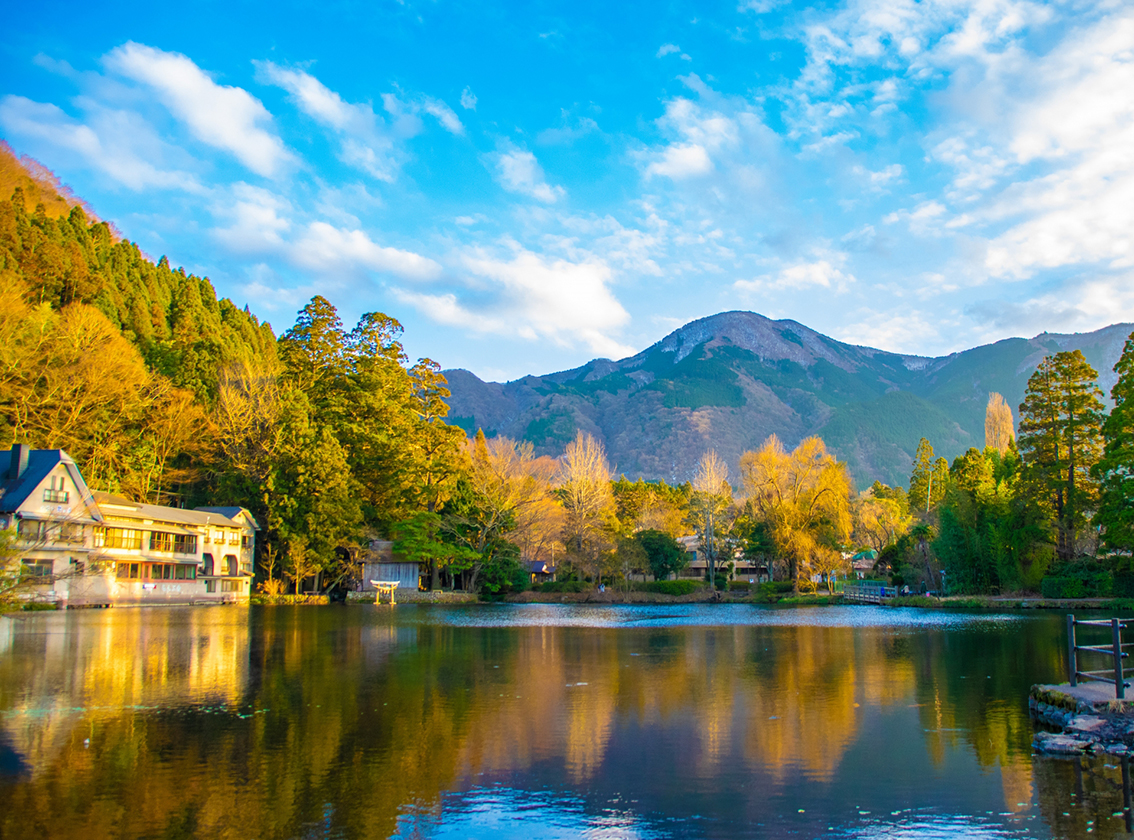 由布岳を望む温泉の里・湯布院。朝霧に包まれた金鱗湖の幻想的な景色や、のどかな田園風景が広がるこの地には、心が安らぐ穏やかな時間が流れています。個性豊かなショップやギャラリーが点在する湯の坪街道を散策すれば、湯布院ならではの素敵な出会いの数々。訪れる人を温かく迎える、大分を代表する癒しの里です。
