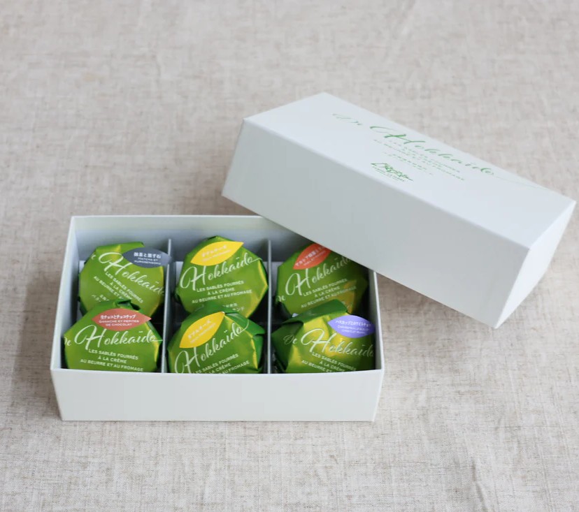 クリームを包むサブレには、美瑛産小麦を用いたオリジナルブレンド「美瑛の風」を採用。オホーツクの塩を隠し味に加え、生地を一晩寝かせてから薄く焼き上げることで、サクサクと、ホロリとほどける上質な食感を実現しています。香ばしいサブレと濃厚なクリームが調和する幸福感あふれるスイーツです。