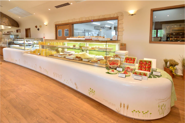 北海道・美瑛町に拠点を構える「フェルム ラ・テール 美瑛」は、洋菓子・パン・レストラン・カフェを併設する複合施設です。店名はフランス語で「大地の農場」を意味し、その名のとおり自然との共生を大切にしたものづくりを実践しています。美瑛産小麦との出会いから生産者とのつながりを広げ、創業時の理念「自然に生きる」を体現する場として、この地を拠点に選びました。地元産を中心とした北海道食材を取り入れ、菓子・パン・料理を通じて“テロワールの味わい(土地の個性が食材や味わいに表れること)”を提供。訪れる人々が自然の恵みを五感で楽しめる場であるとともに、地域経済への貢献や生産者の支援にも力を注いでいます。